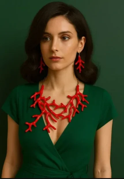 Red Statement Coral Necklace and Earring Set