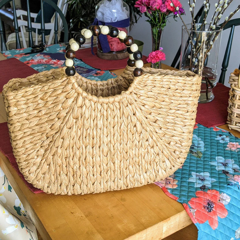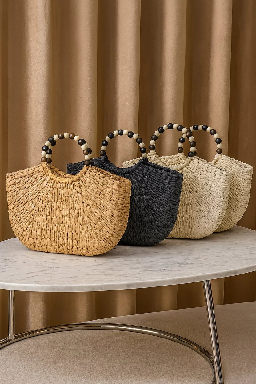 Chic handmade woven bag with Luxe wooden bead handles. Perfect for beach days, resort vacations, or adding boho flair to any outfit. This beautiful, lightweight straw woven beach bag has enough space to accommodate your travel and daily necessities, making it an ideal companion for you.