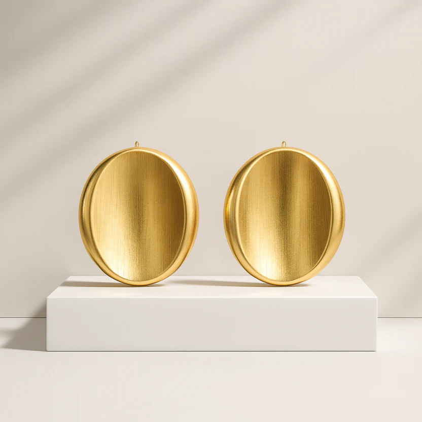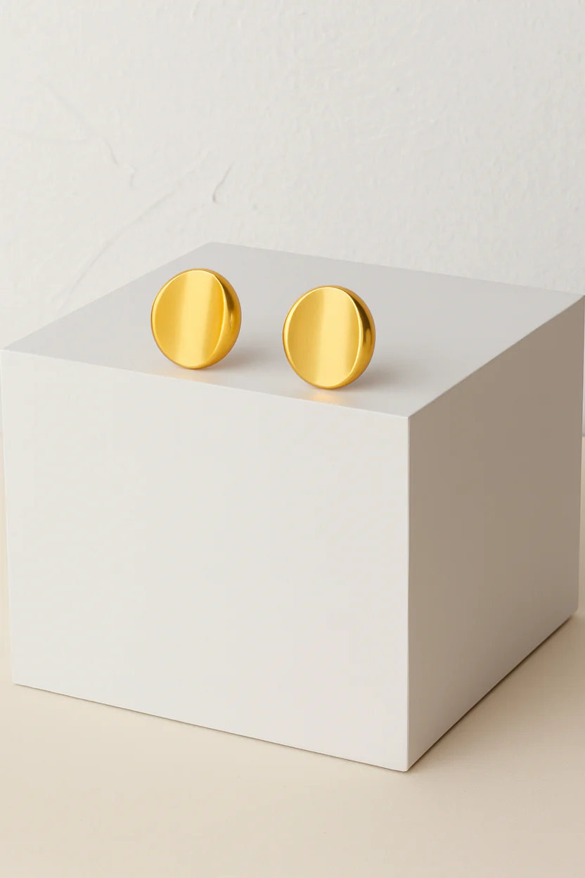 Bold round statement earrings with a soft brushed-gold finish. Lightweight and comfortable, these earrings add a modern, artsy touch to any outfit. Easy to wear for everyday or dressing up.