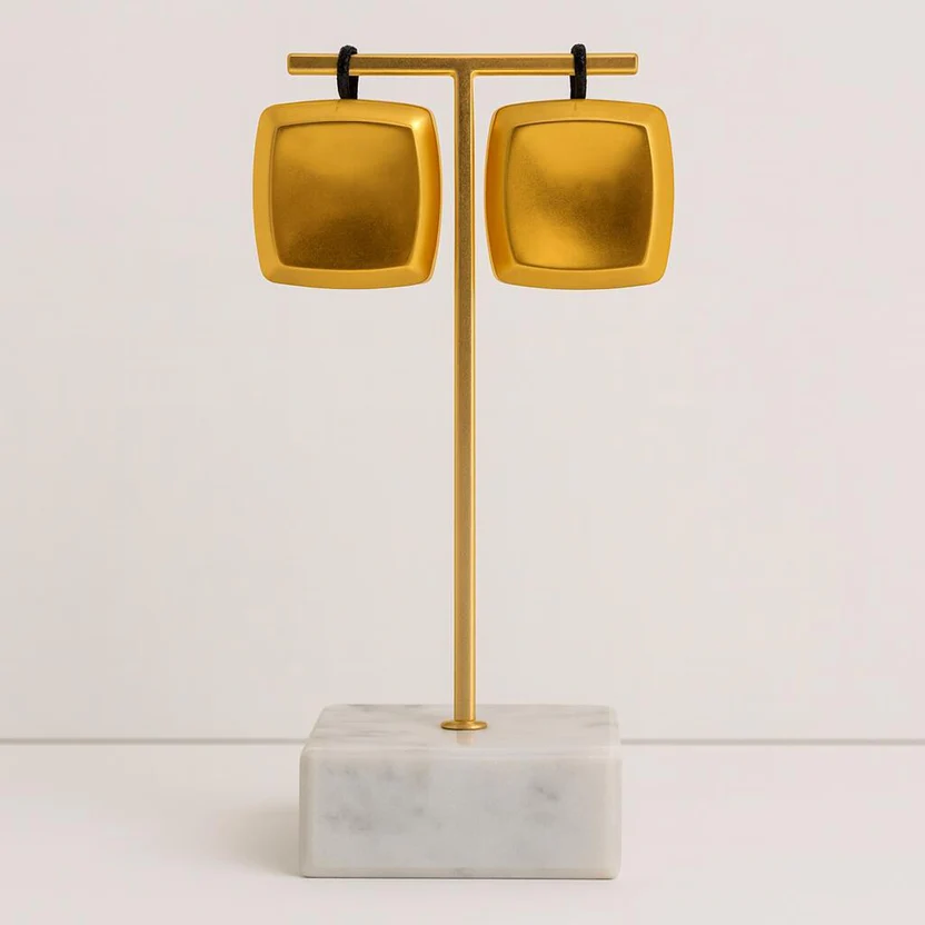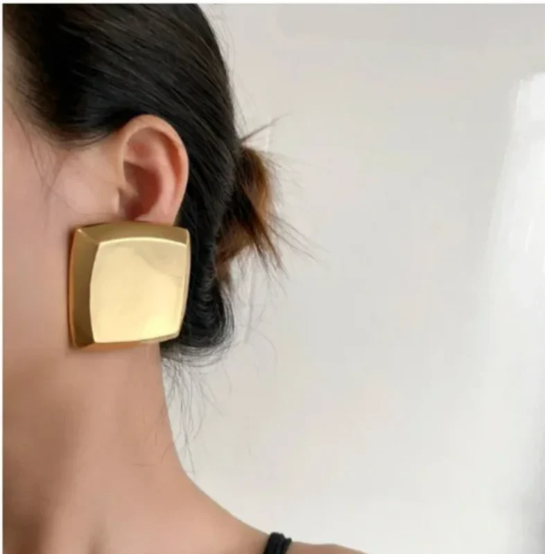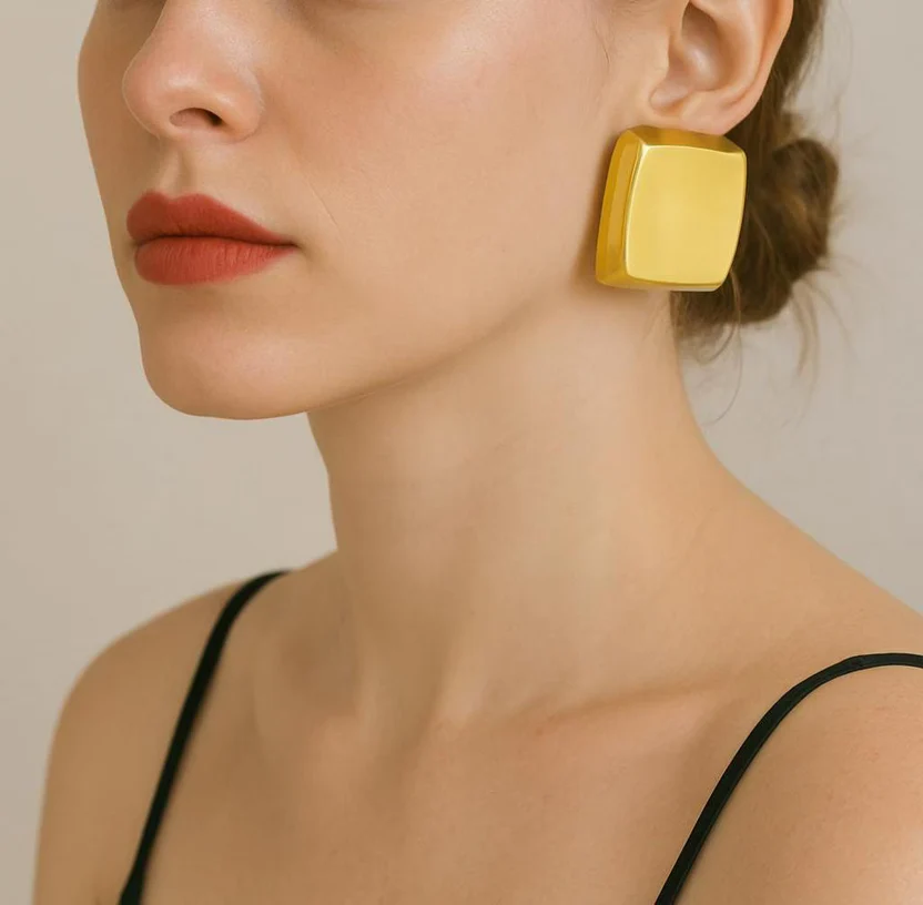 These chunky gold square earrings make a bold, clean statement. The smooth, shiny finish gives them that effortless retro vibe that works for any outfit.