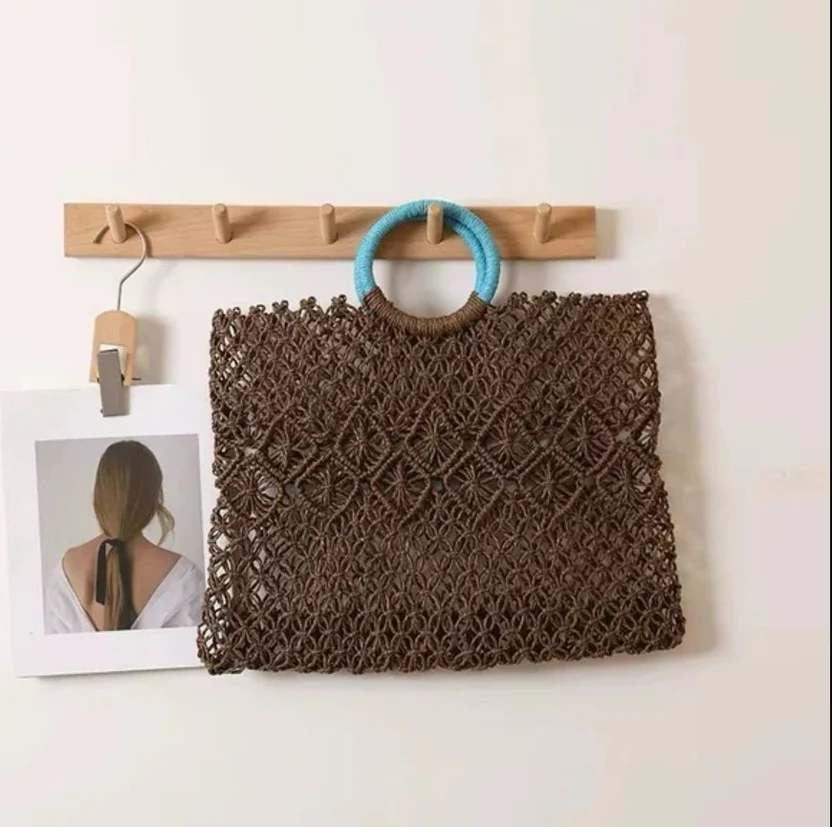 Made with thick, high-quality woven cord, this premium macramé tote gives off effortless boho vibes with a durable, artisan look. The wrapped ring handles add a bold touch, making it the perfect accessory for beach days, vacations, or everyday chic. Roomy enough for your laptop, or beach towel. It’s lightweight but built to last.